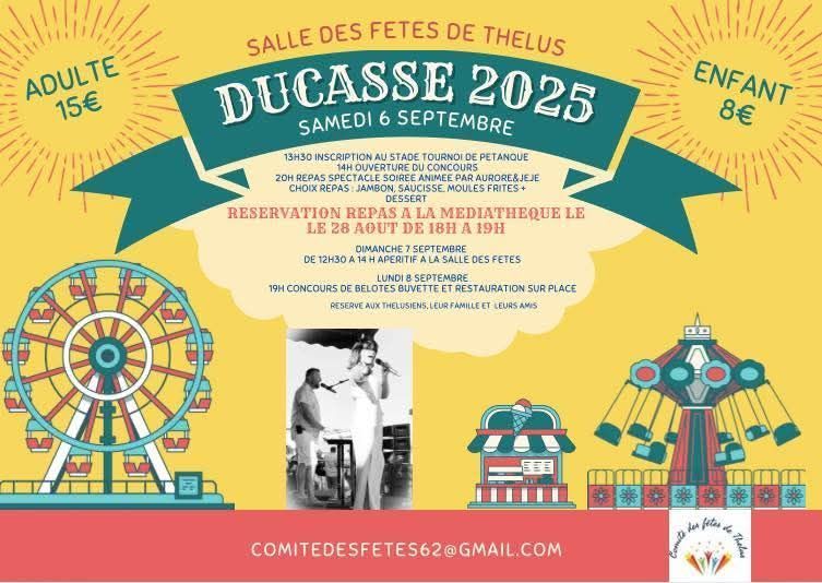 Retrouvez en image, la programmation du week-end proposée par le comité des fêtes pour la ducasse 2025 à Thélus !